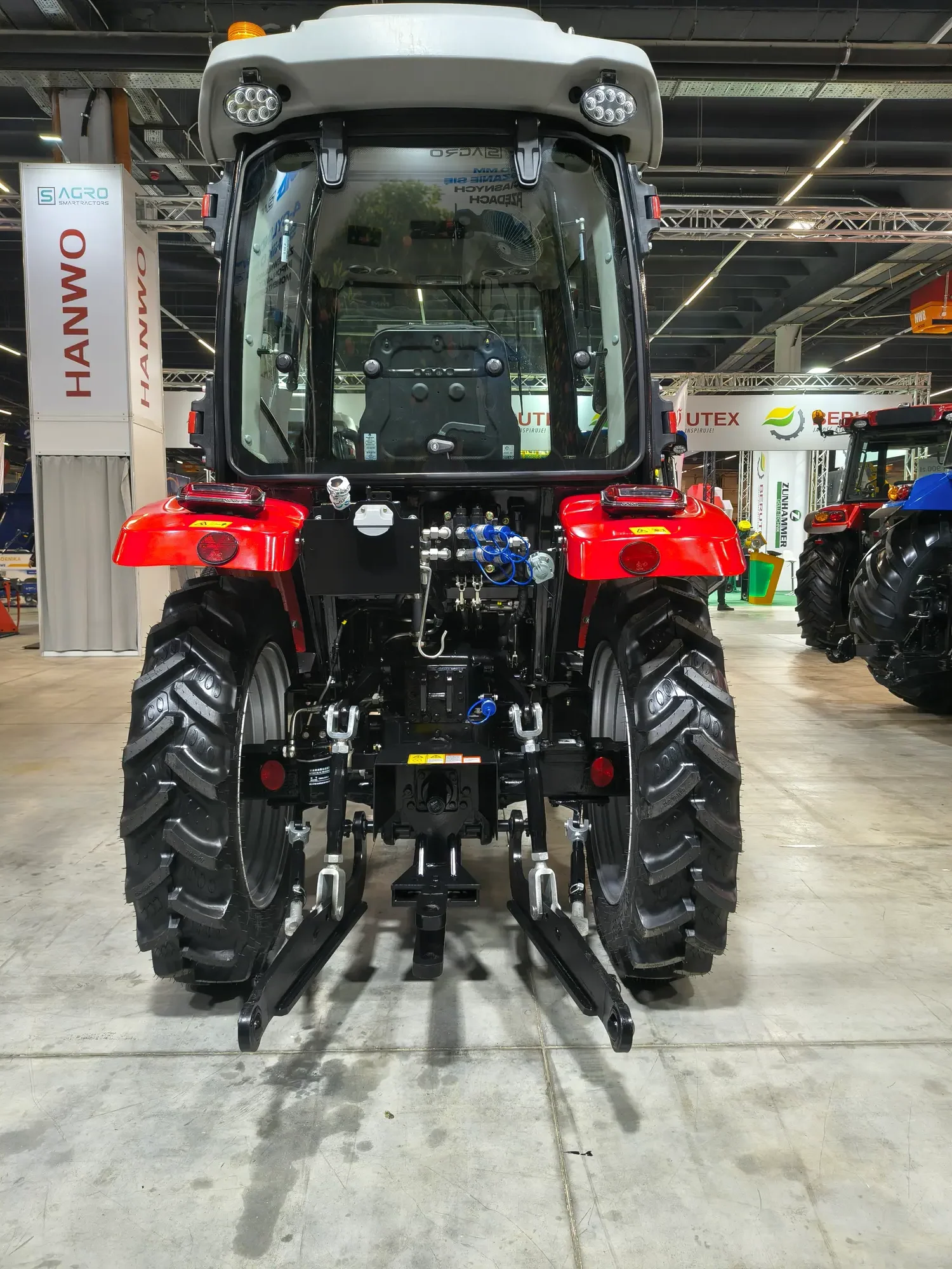 Komfortowa praca przez cały rok! Hanwo HWE354C to ciągnik Hanwo wyposażony w komfortową kabinę, ogrzewaną i wentylowaną. Silnik o mocy 40 KM, napęd 4WD i skrzynia biegów 8/8 z rewersem zapewniają wszechstronność. Ten model traktora idealnie sprawdzi się w różnorodnych pracach gospodarskich. Solidna konstrukcja i niezawodność to cechy charakterystyczne tej maszyny.